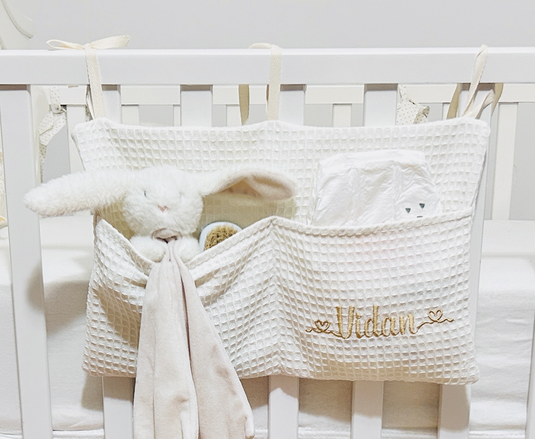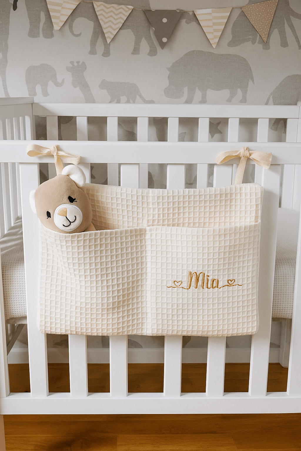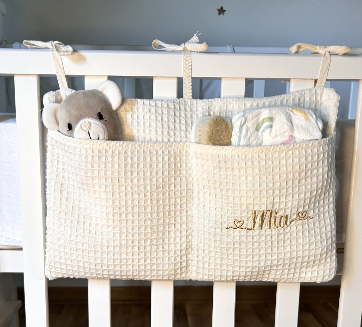 Unesite red i eleganciju u bebin kutak uz naš personalizovani organizator za krevetac sa imenom.