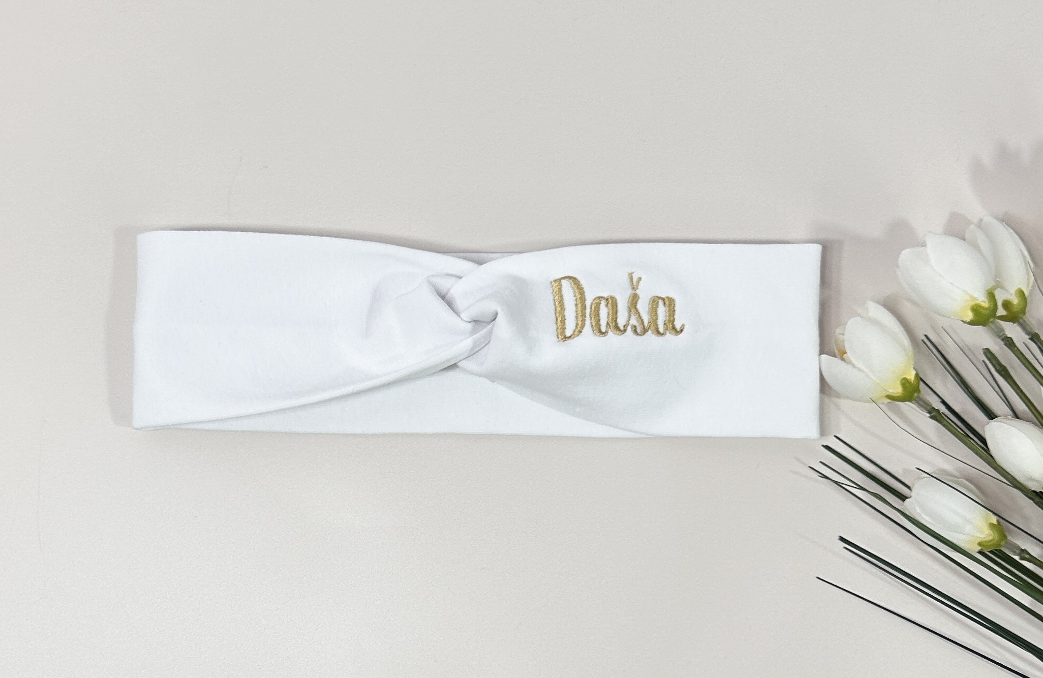 Pamučna personalizovana traka za kosu. Za bebe i devojčice do 8 godina.